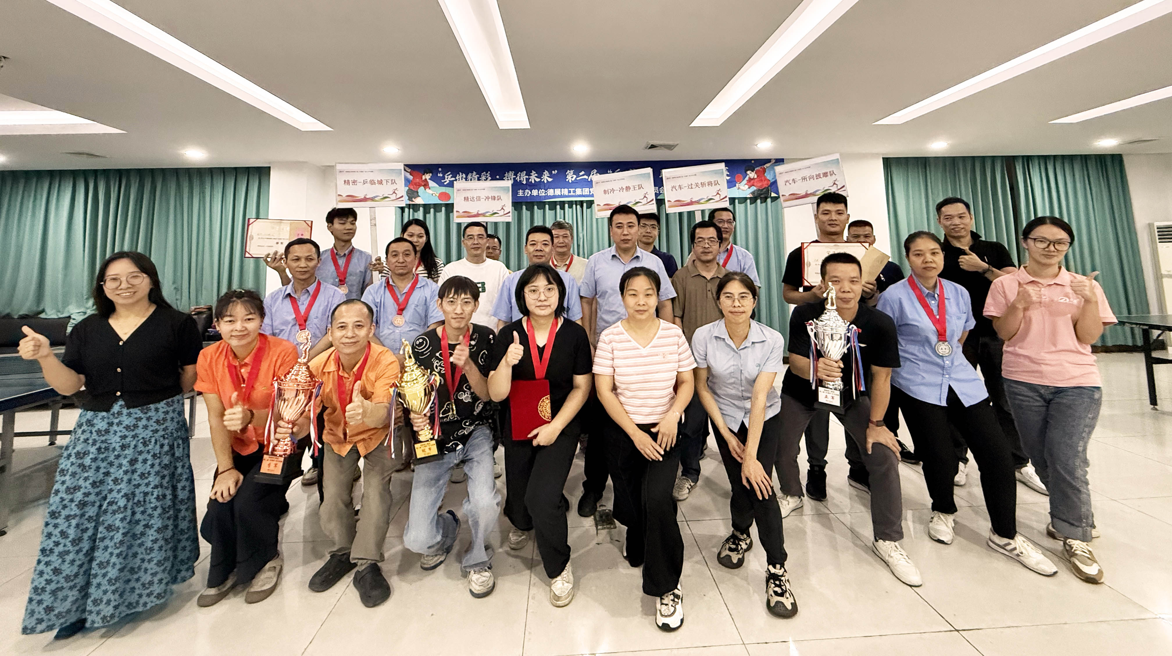經(jīng)過激烈鏖戰(zhàn)最終由技術(shù)嫻熟、配合默契的精密-乒臨城下隊(duì)榮獲季軍;由實(shí)力強(qiáng)勁、表現(xiàn)卓越的汽車-所向披靡隊(duì)榮獲亞軍;勇奪桂冠的是技術(shù)精湛、團(tuán)結(jié)一心的精達(dá)信-沖鋒隊(duì)。